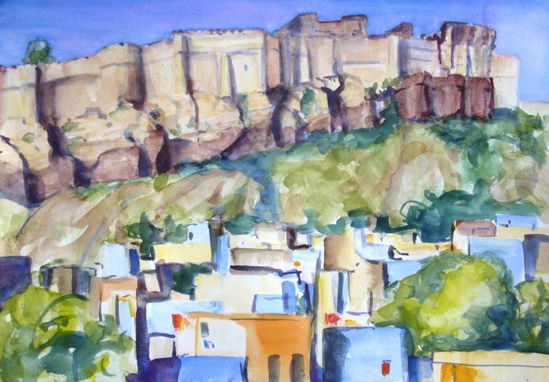 Dusty Plane Rajastan,6"x5", Watercolour