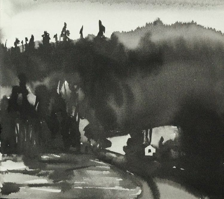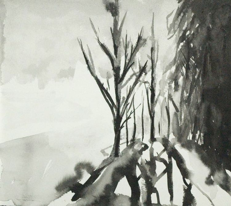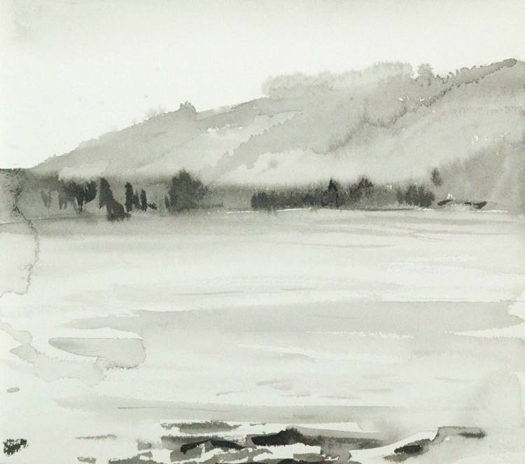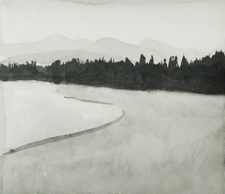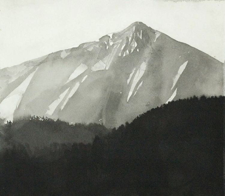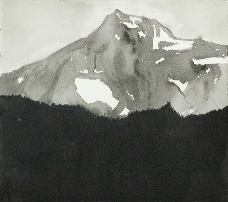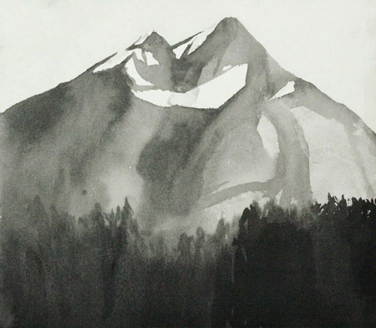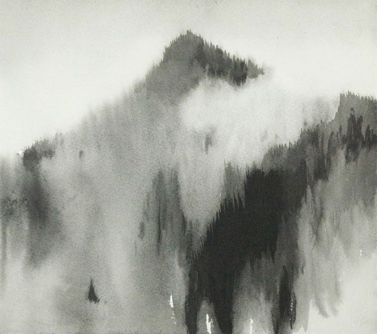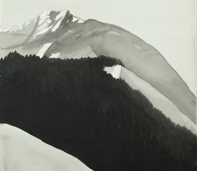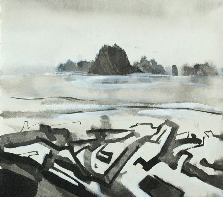 Chinese Ink on water colour paper, paintings of the spectacular and huge landscapes of Washington State in the USA. The mountains are mainly the North Cascade range and the coastal paintings are of the Olympic Peninsula.