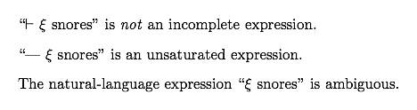 The function-interpretation can be rehabilitated in order to overcome these failings as I show in "Rumfitt's Theory of Predication". The version of the function-interpretation that I favour also has other uses. It allows us to provide a coherent account of Fregean incomplete expressions on the linguistic level (as I show in "On the Interpretation of Incomplete Expressions"), in the realm of sense (as I show in "On the Sense of Unsaturated Expressions") and also in the realm of reference (as I show in "Is the Concept Horse an Object?"). What Rumfitt has done is valuable, however, because it makes clear that the full potential of Frege's theory of predication has still not been realised and that it is likely to give rise to further developments in the philosophy of language. Unfortunately, Rumfitt's inaccurate presentation of this theory may delay this potential being realised.