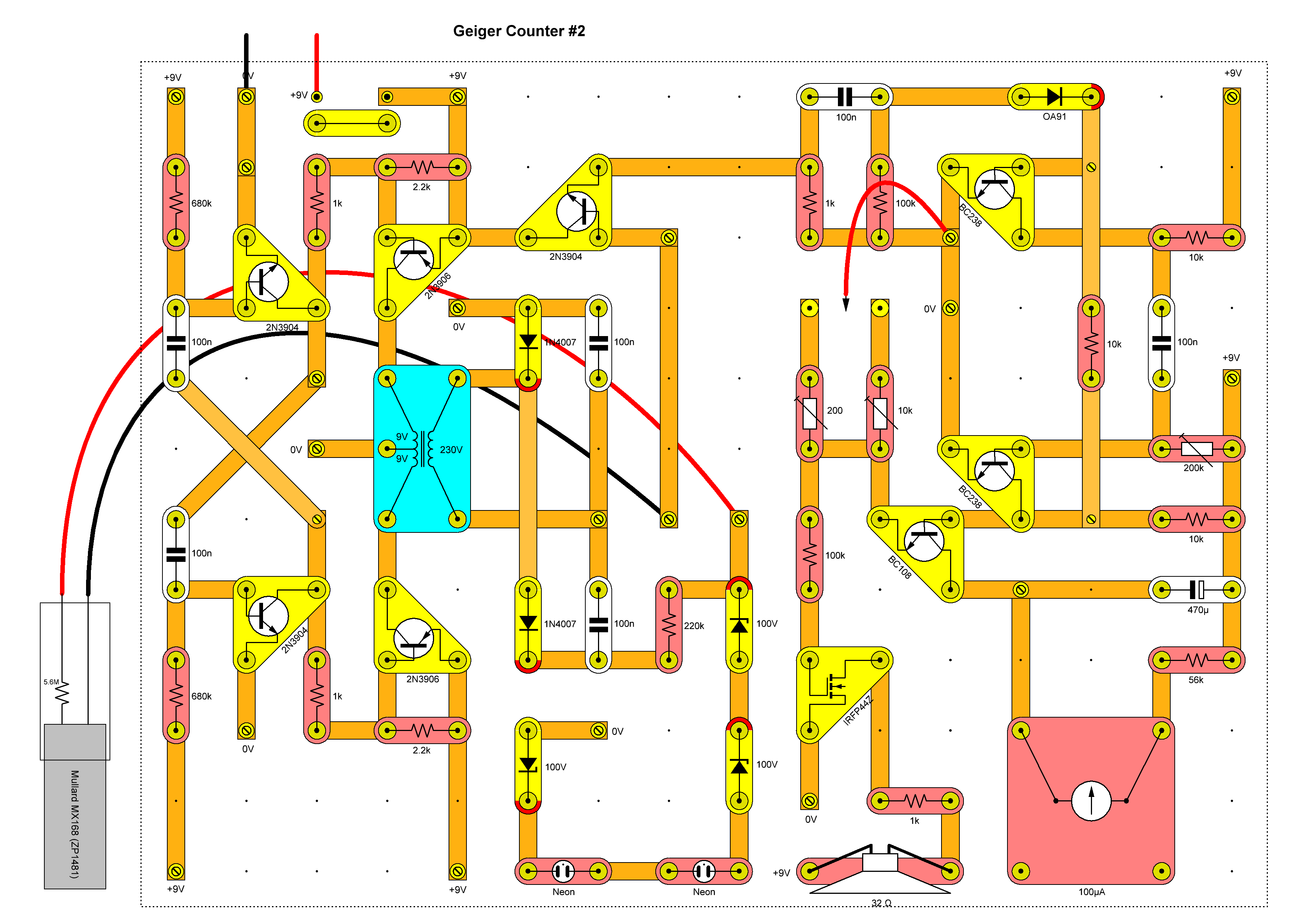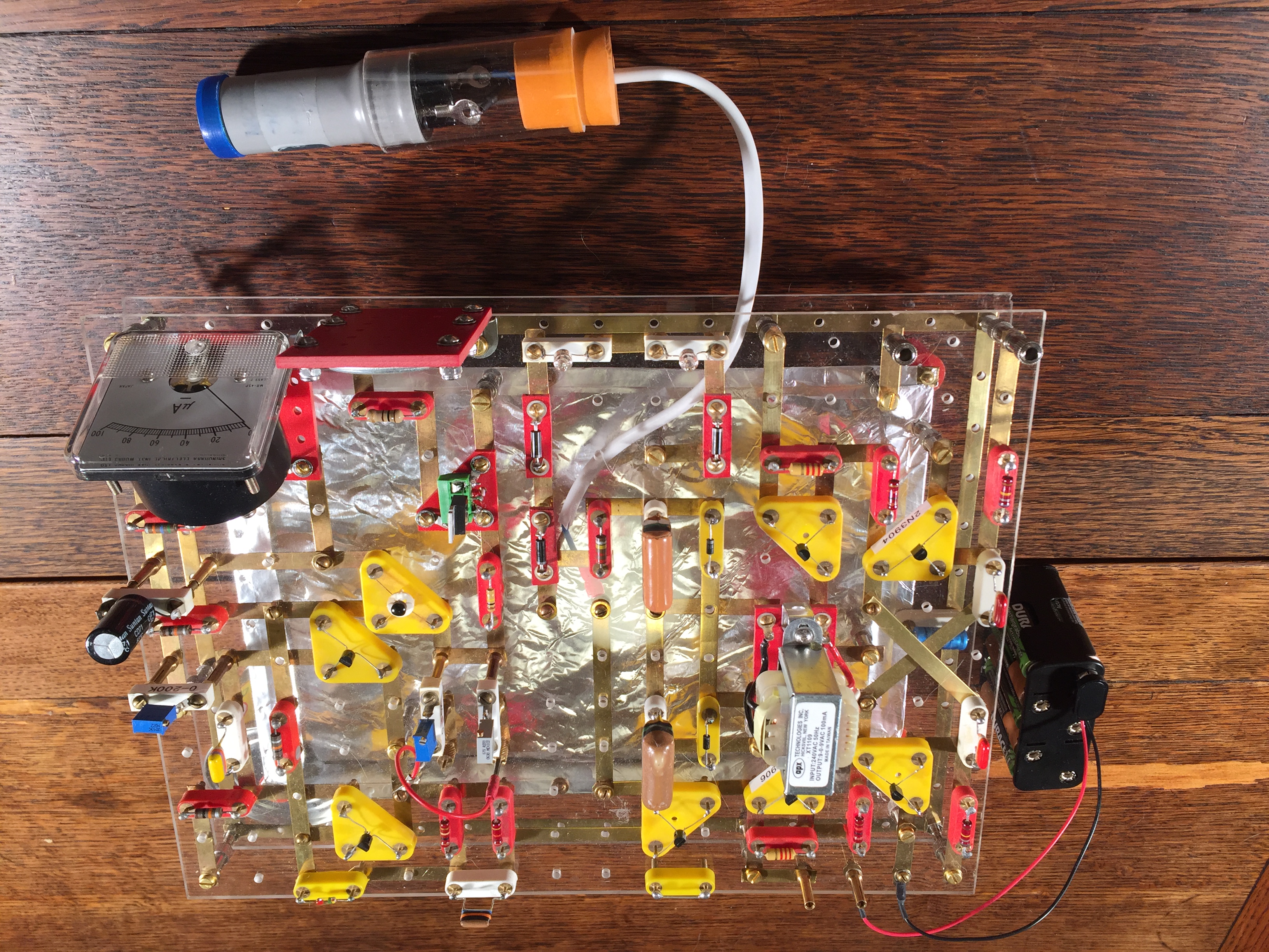 This is a Geiger Counter made using components from the vintage Radionic electronics construction system.