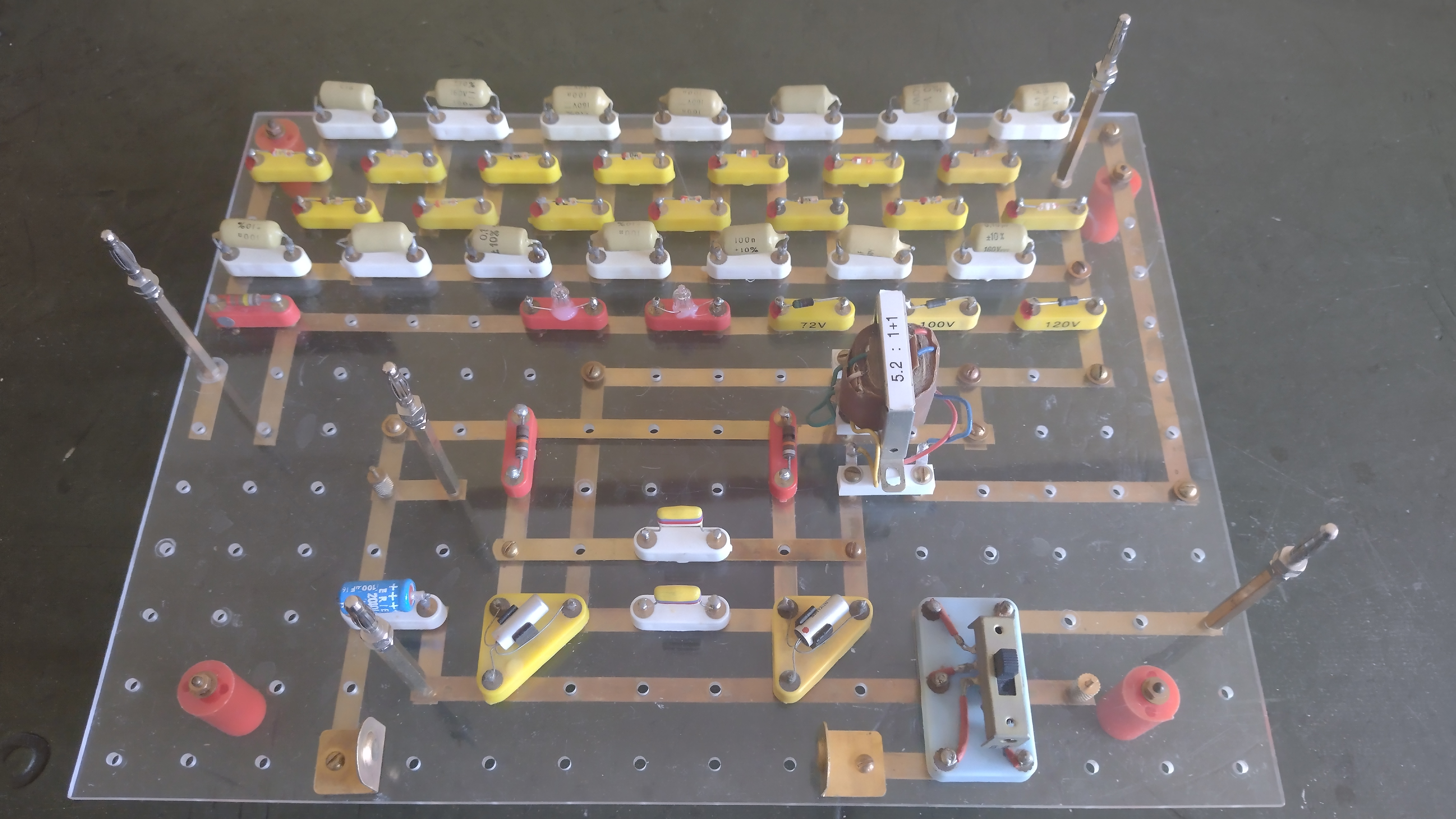 The chamber contains two electrodes whose potentials differ by several hundred volts (400V in this case).